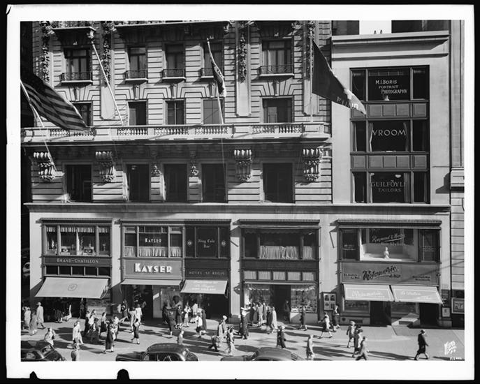 Hotel St. Regis, store fronts and adjoining building on 5th Avenue.