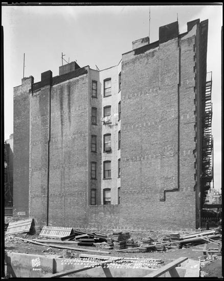 Apartment building, view looking N.W. at east gable wall to 320 East 71st Street, legal record photo, 11:06 A.M.