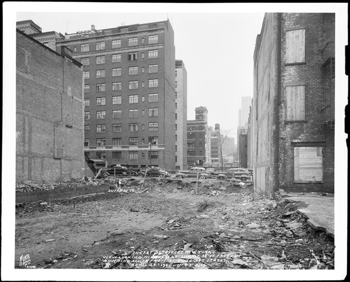 211 East 35th Street. View looking west through 35th Street to show removal of sidewalk bridge.