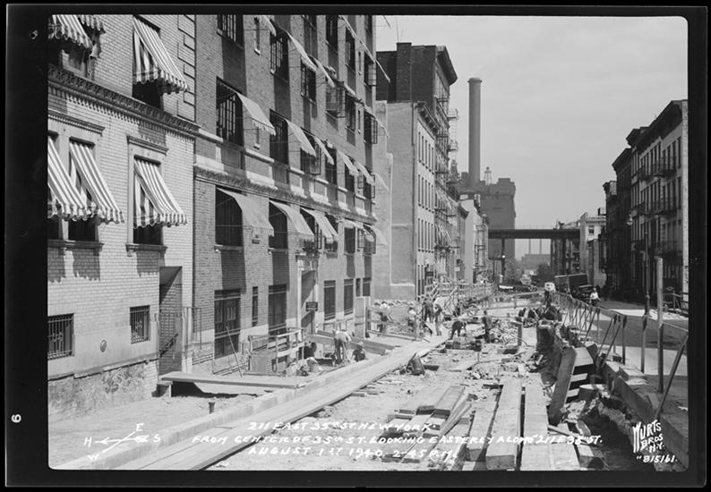 211 East 35th Street. Street construction, view looking N.W. through East 35th from a point about 75 feet west of 2nd Avenue.