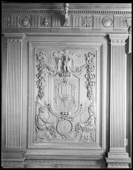 Hall of Records. Panel "Degradation" in Oak Court Room.