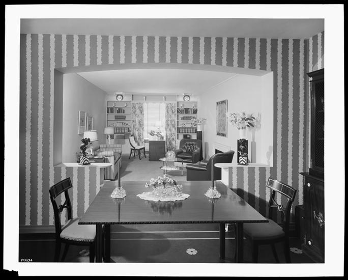 123 East 37th Street. Lindsley House apartments, interior, living room, apartment 5B, model apartment.