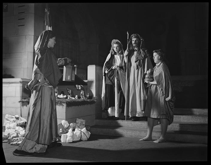 2 East 90th Street. Church of the Heavenly Rest, Christmas pageant 1942, "Story of the Nativity", manger scene with wise men and shepherds