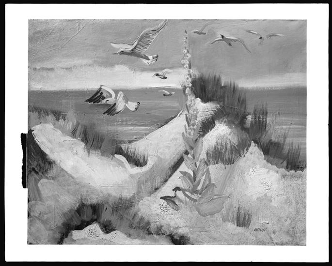Wharf and fish nets, cat, oil painting by "Annot" Jacobi.