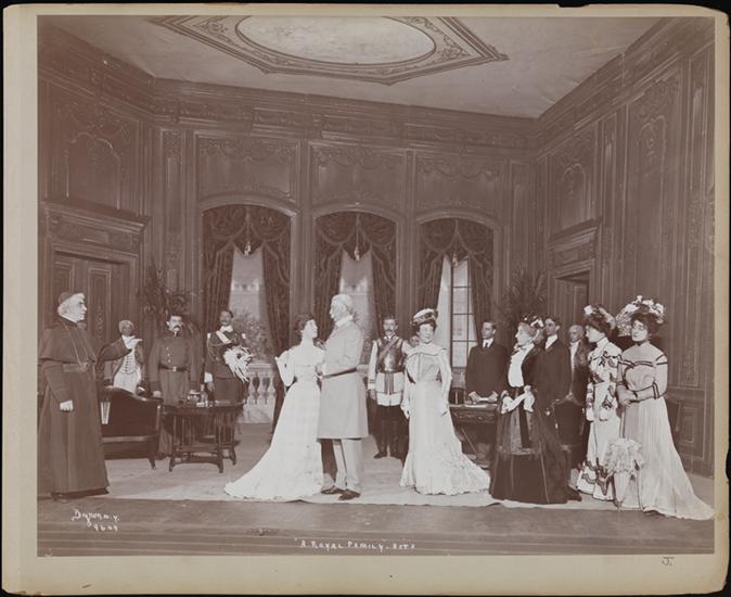 A scene from R. Marshall's comedy "A Royal Family" presented by Charles Frohman at the Lyceum Theatre in 1900, featuring Annie Russell as the Princess Alestine Victorine Angela.
