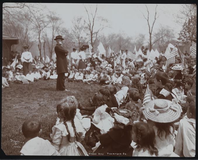 Inscription / technical details "Arbor Day, Thompson Sq." on neg-- should be "Tompkins"