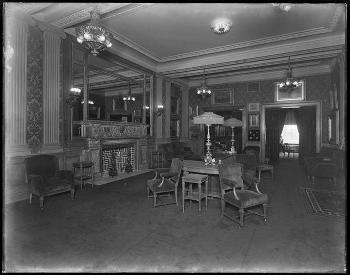 110 West 57th Street. Lotos Club, downstairs café and billiard room towards bar.