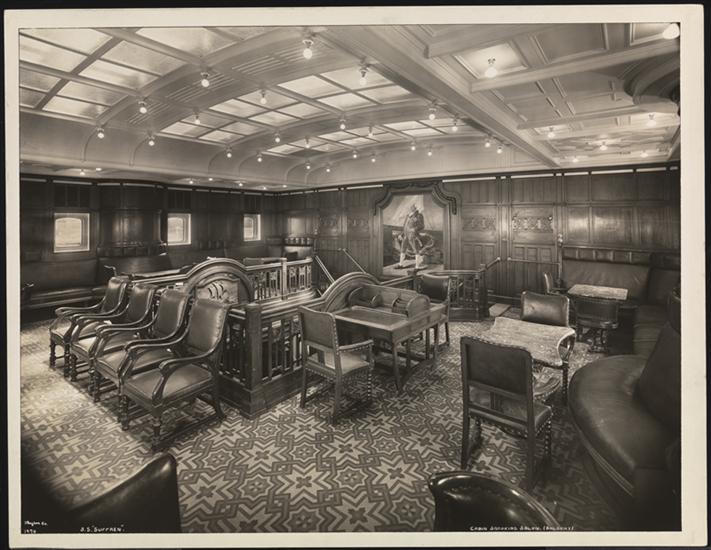 French Line, S.S. "Suffren" Pier 57 North River, Interior, Smoking Salon.