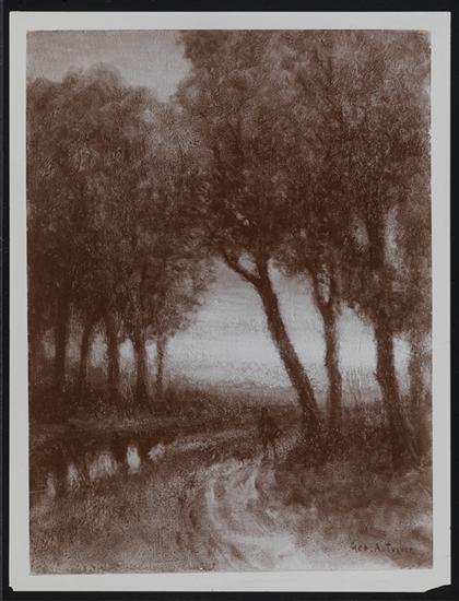 Photograph of a landscape painting; signed Geo. A. Traver.