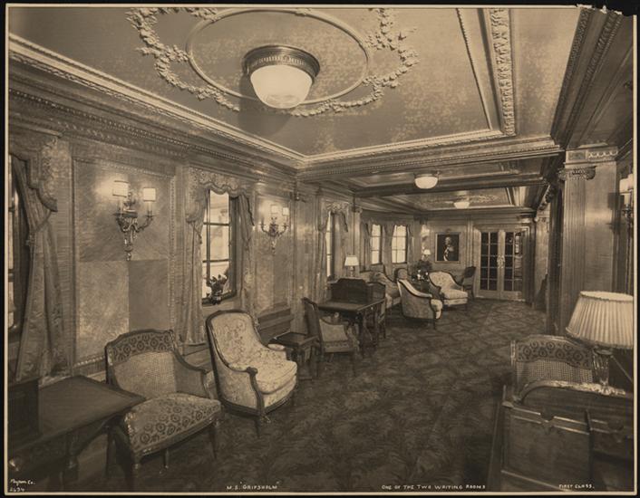 Swedish American Line, S.S. "Stockholm", Interior, Writing Room.