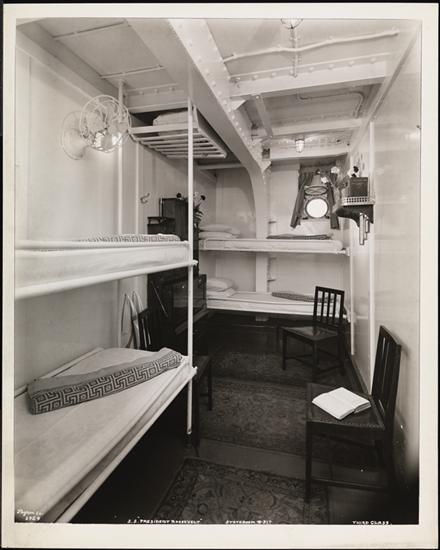United States Lines, S.S. "President Roosevelt", Pier #59 N.R., Interior, 3rd Cl., Part of Four Berth Stateroom #319.