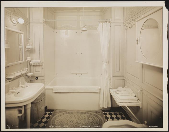 French Line, S.S. "France", First Class, Interior, Grand de Luxe #61 a Bathroom.