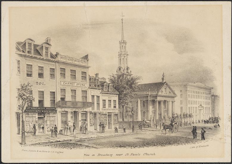 View of St. Paul's Church and the Broadway Stages, N.Y.