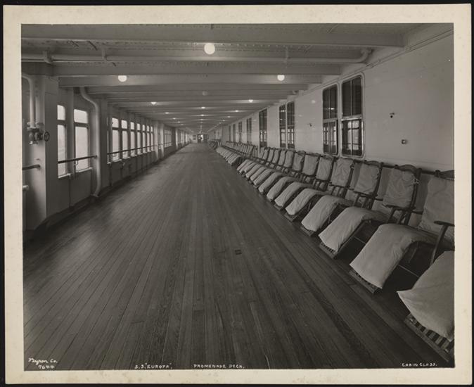 Hamburg American Line--North German Lloyd, S.S. "Europa", Pier 86, N.R., Cabin Class, Interior, Vestibuled Promenade Deck.