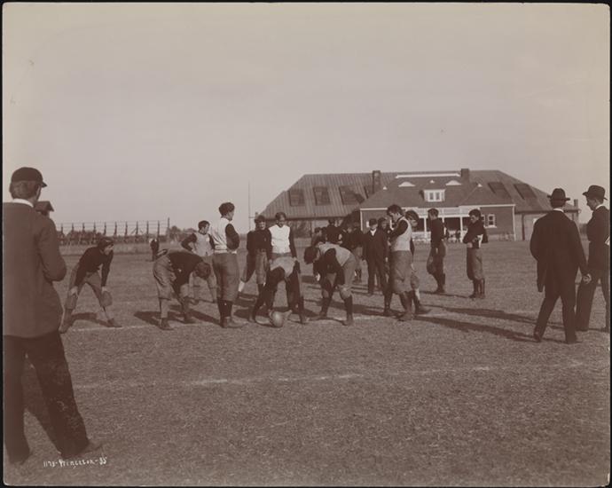 Young men practicing football at Princeton, New Jersey.