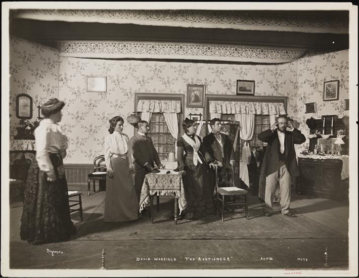 "David Warfield 'The Auctioneer' Act III" on neg. | "Withdrawn/from N.Y.P.L." stamped in red ink on recto. | "Act III, sc 2" in pencil on verso.