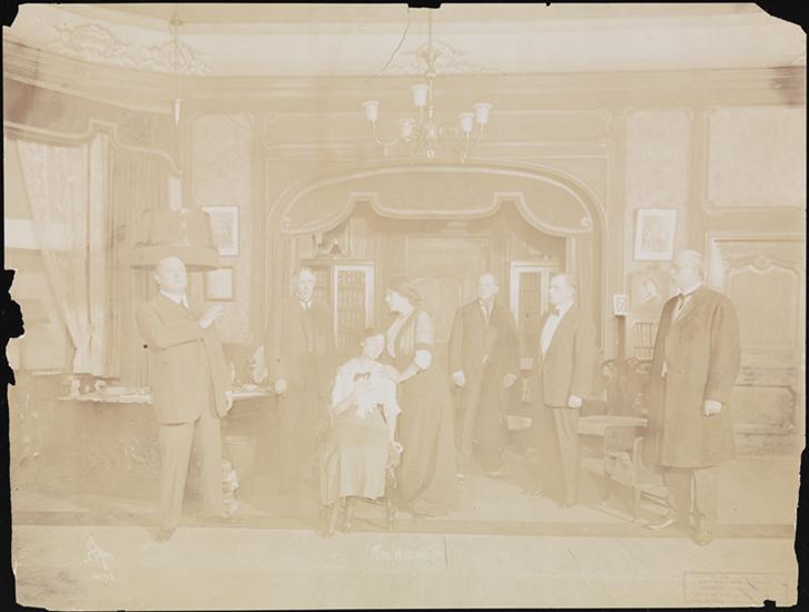 Description A scene from a production of William C. De Mille's "The Woman," presented at the Republic Theatre in 1911.