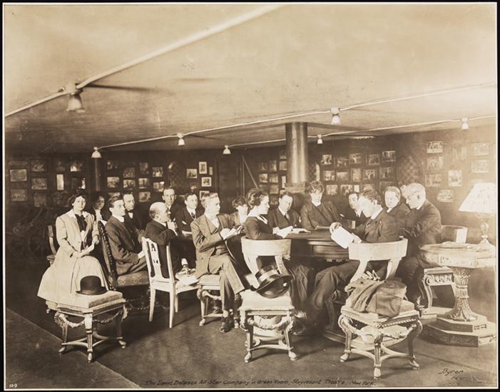 The David Belasco All Star Company in Green Room, Stuyvesant Theatre, New York.