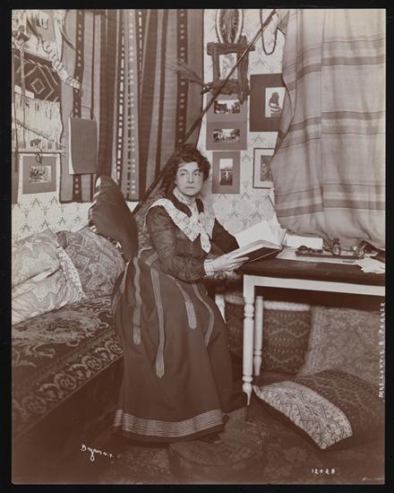 Mrs. Lottie B. Parker (author of "Way Down East") seated with book in hand.