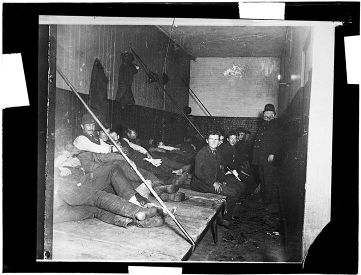 Police Station Lodging Room 4. Oak Street Station, Six boys picked out of the draft in the men's lodging room.