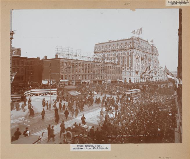 Auto Race New York-Paris, Times Sq. Feb 12, 1908, Hotel Astor.