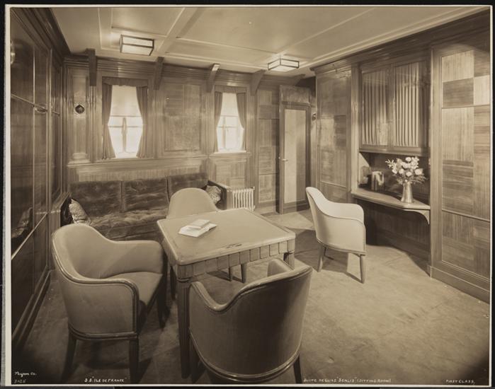 French Line, S.S. "Ile de France", Interior, Suite de Luxe (Beauvais) Sitting Room.