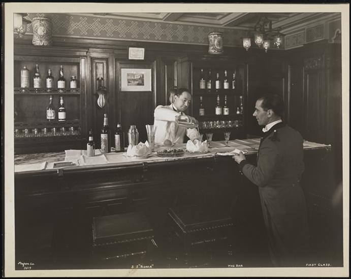 Italia-America Shipping Corp., S.S. "Roma", Pier 97 North River, Interior, First Class, Lounge, Looking Aft.