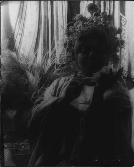 In ink, on verso: Betrice Reading / XII qq 1 / Jan. 6, 1959; stamped on verso: PHOTOGRAPHED BY CARL VAN VECHTEN / 146 CENTRAL PARK WEST / CANNOT BE REPRODUCED WITHOUT PERMISSION; embossed on recto: PH