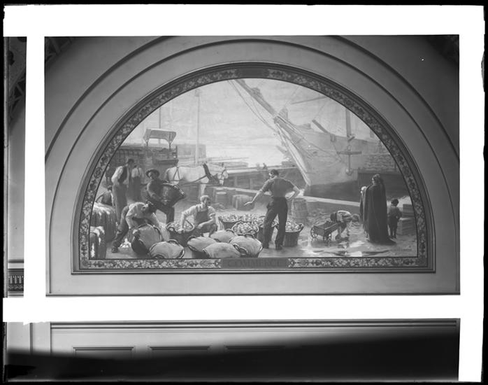 214 Broadway. National Park Bank, mural panel, "Commerce".