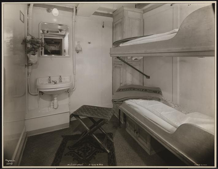 M.S. "Vulcania" Pier 97 N.R., Interior, Third Class 2 berth cabin #940.
