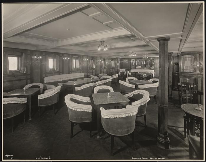 French Line, S.S. "France", Interior, Second Class, Smoking Room.
