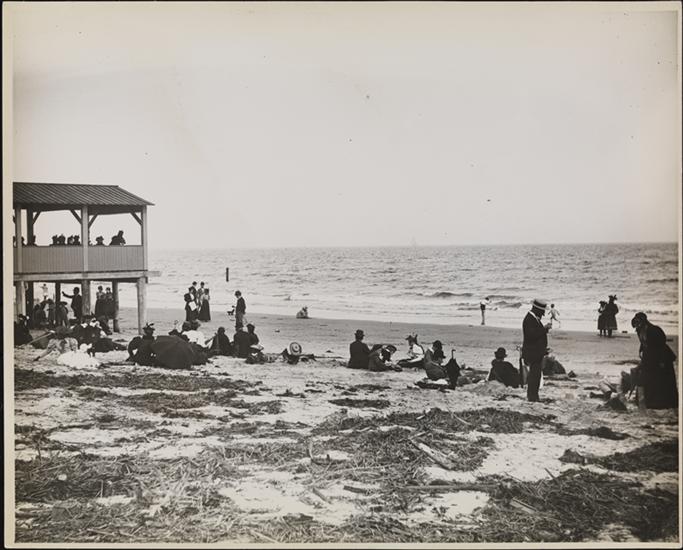 On the Beach in Coney Island [detail, showing children and nanny in foreground]