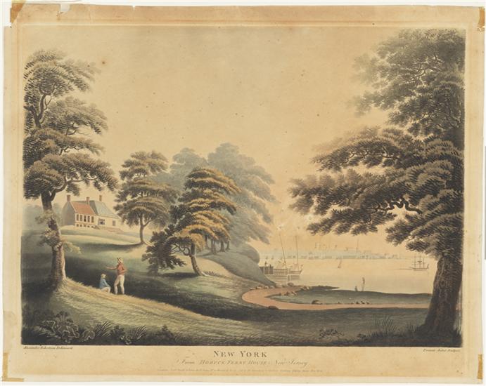 New York Harbor from Hobuck N Jersey Shore, drawn by Archibald Robertson