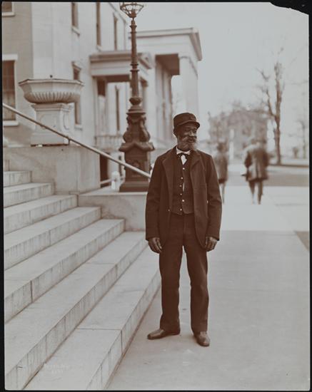 A retired African American sailor in uniform at Sailor's Snug Harbor, a facility and home for retired sailors on Staten Island, New York.