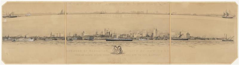 A. Skyline of the Southern part of New York City ([...]. the Battery) B. Skyline from the same section of N.Y. City