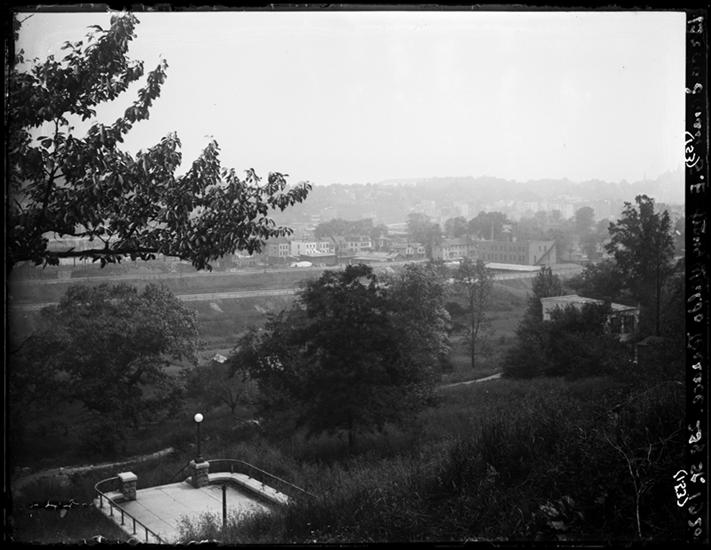 Broadway Series. View taken from field looking north from Arden Street. Billboards along Broadway at right. Dyckman Street and Riverside Drive are seen at left. 207th Street in the distance.