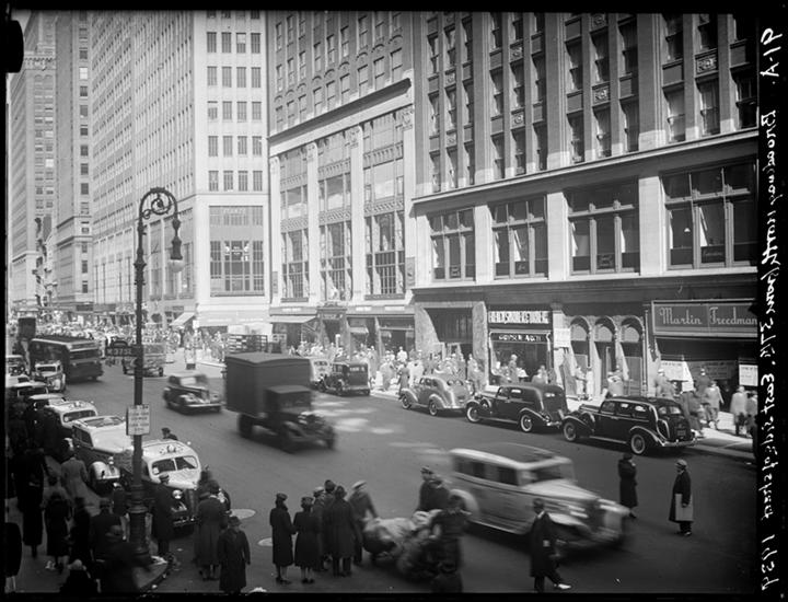 Broadway Series. Looking north from 38th Street, east side of street. Picture taken March 1939 to contrast with negative No. 91 which was made in 1920.