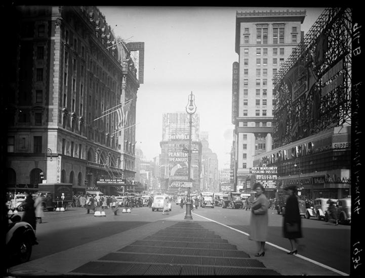 Broadway Series. View looking north from 44th Street - Times Square. Picture taken March 1939 to contrast with negative No. 94 which was made in 1920.