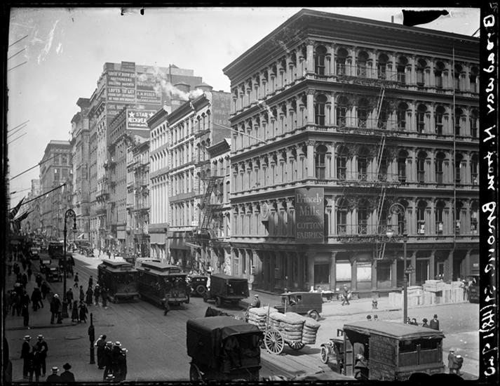 Broadway Series. West side of Bway looking north from Spring Street. Prescott Building on corner.