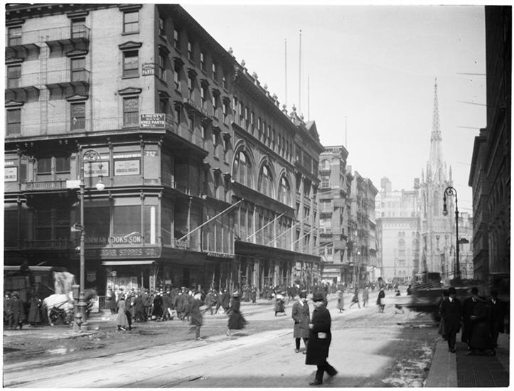 Broadway Series. View of Broadway looking north toward 10th Street. Wanamaker's at right (Nos. 772-786). Grace Church in center.