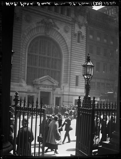 Broadway Series. East side of street looking north. National Park Bank at right, and then a part of the St. Paul Building (on corner of Ann Street). Post office at left.