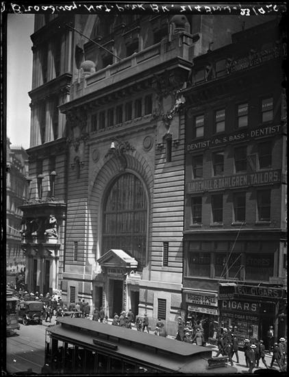 Broadway Series. Bway looking north from Exchange Place showing east side of street. Picture was taken from the second floor fire-escape of No. 53 Bway.
