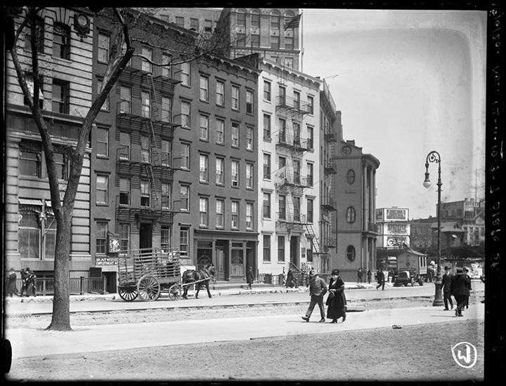 Broadway Series. View of the east side of Bway looking north from 11th Street. Picture was taken from in front of No. 791, which is opposite Grace Church.