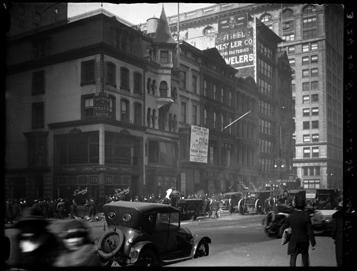 Fifth Avenue, N.Y., showing west side of street, looking north from corner of 22nd Street, to 23rd Street. No.172 on corner at left.