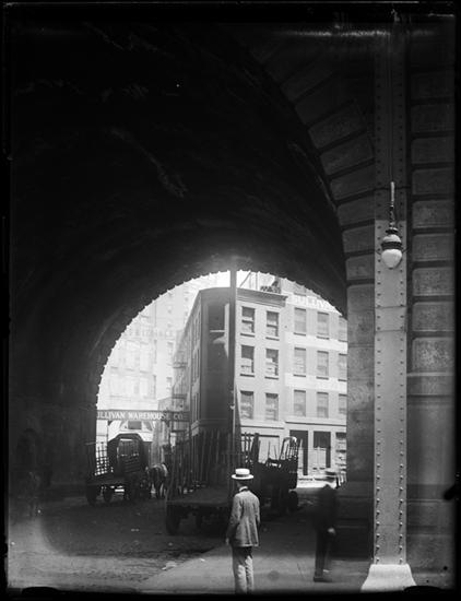 [Street in Lower Manhattan with the Woolworth Building in the background.]