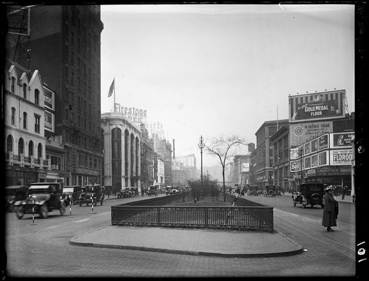 Broadway Series. Looking north from 79th Street. Wood's store is the first tall building on 80th Street, at right. Keith's Theater beyond the low tree. Broadway studio building at left.