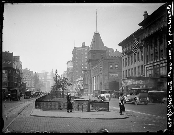 Broadway Series. View of east side of Bway, looking north from 13th Street. Union Square in distance. Hotel Churchill is at the corner on 14th Street facing the square.