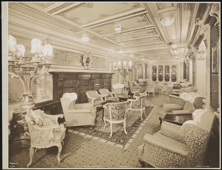 Lloyd Sabaudo Line, S.S. "Conte Biancamano" Pier 95 N.R., Second Class Smoking Room.