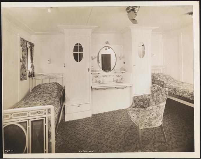 French Line, S.S. "Suffren" Pier 57 North River, Third Class, Interior, 2 Berths Stateroom #638.