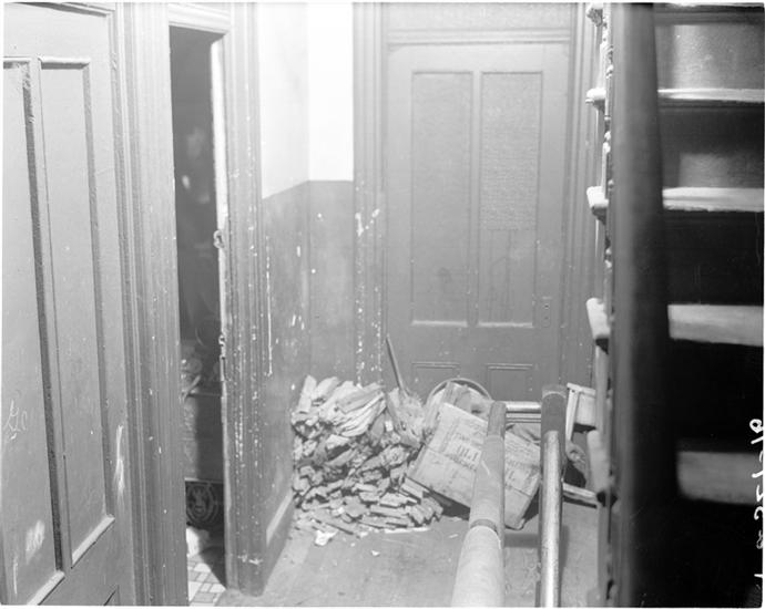 Interior of a Room Littered with Trash and Bathtub